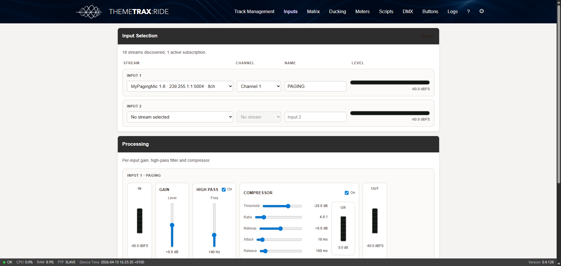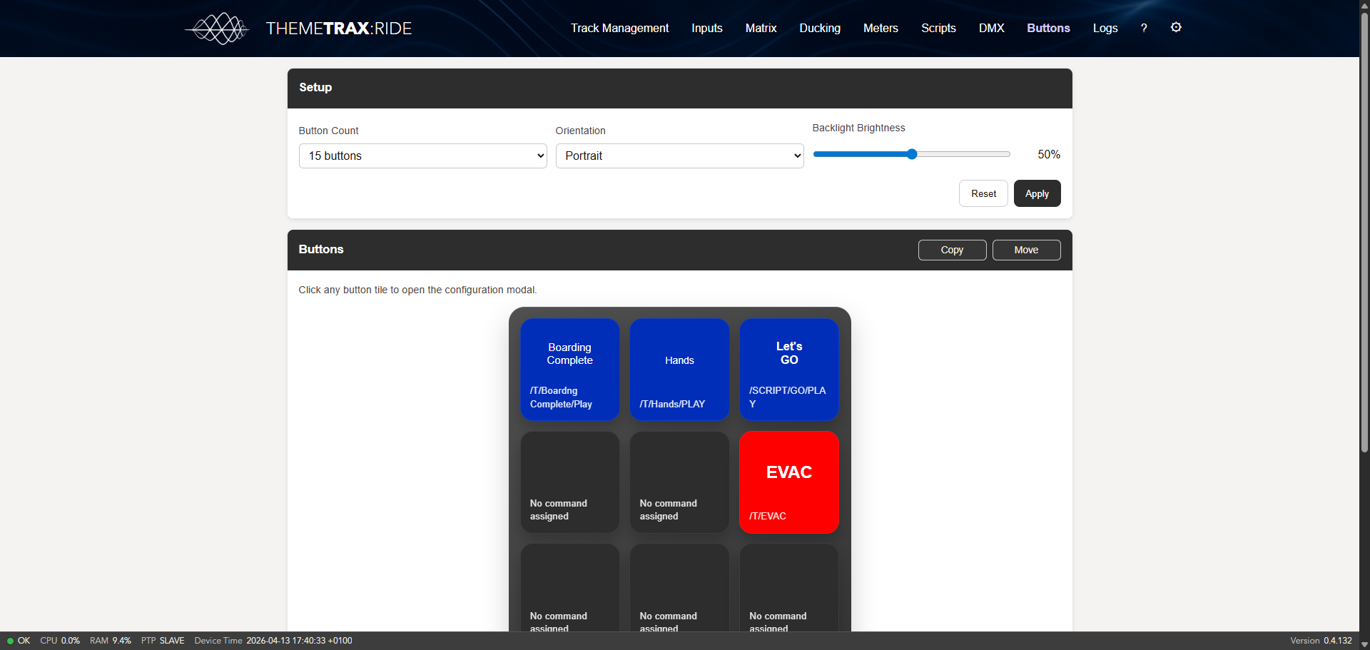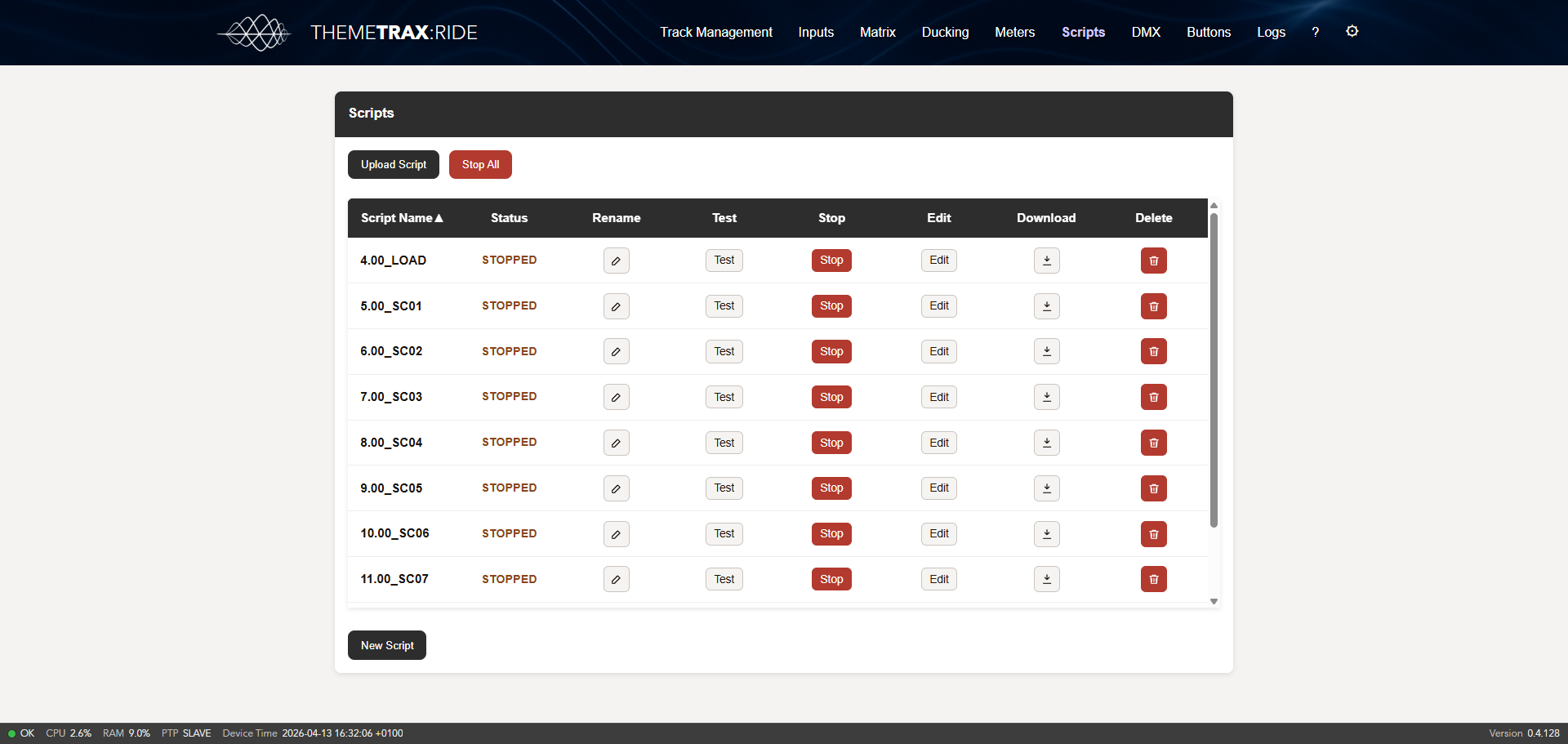 Load upto 96 channels of audio, configure looping, group membership, and test fire tracks.